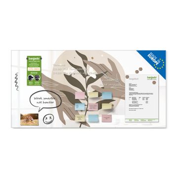Die banjado Glas Magnettafel mit dem Motiv Motiv Zarte Berührung verbindet Funktionalität mit Stil. Sie ersetzt das Zettelchaos durch klare Strukturen und bringt dabei eine warme, natürliche Atmosphäre in Ihr Zuhause. Ob im Büro, in der Küche oder im Eingangsbereich - dieses Design-Board zieht Blicke an und sorgt für Ordnung mit Charakter.
