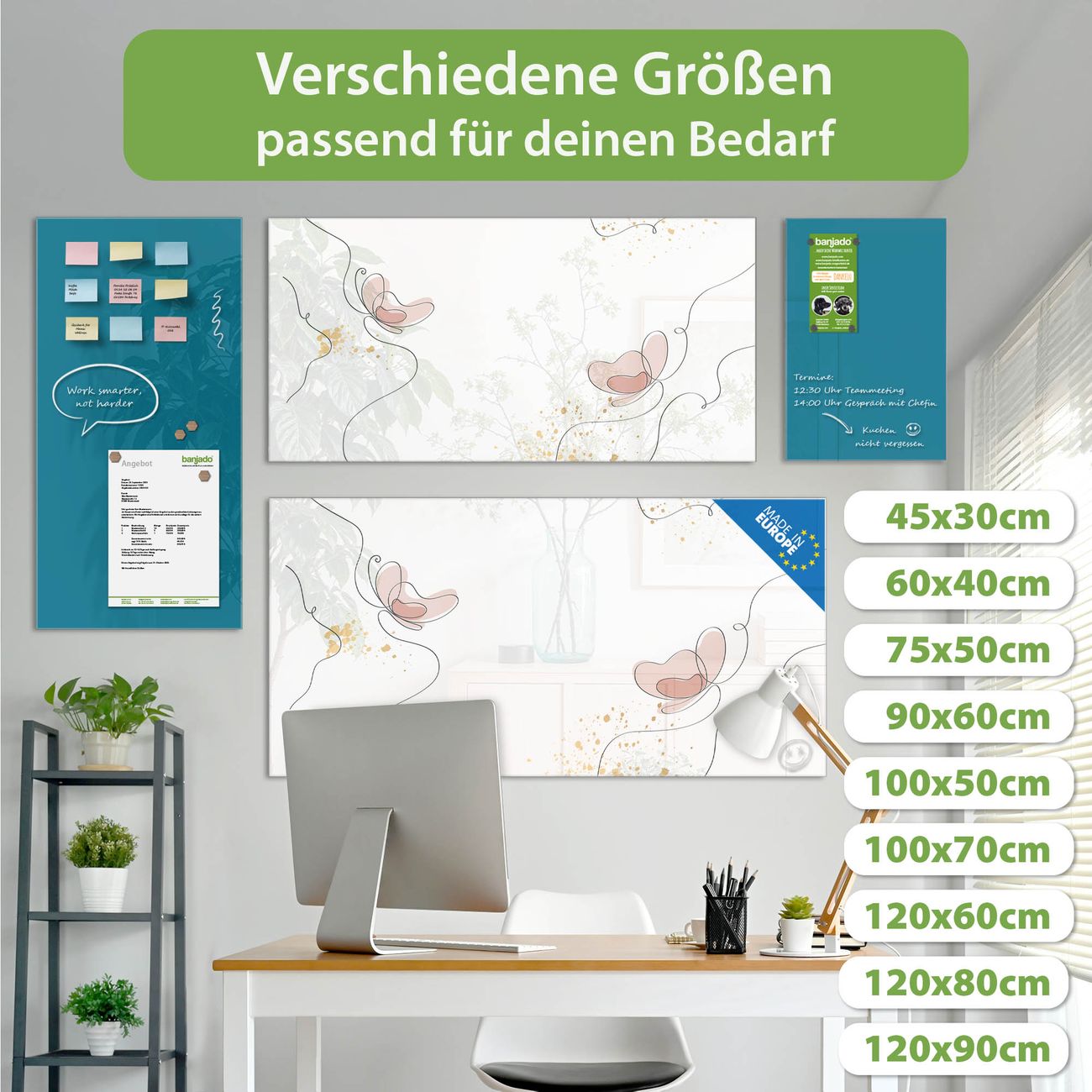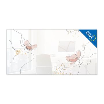 Material: 4mm Sicherheitsglas mit Metallrückwand Eigenschaften: beschreibbar, magnetisch, kratzfest Maße: 100x50x0,6cm, 7,50kg schwer Motiv Nummer 13290 Zarte Schmetterlingslinie Zubehör: inklusive 4 Neodym-Magnete