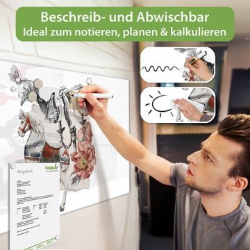 Auf der glatten Glasoberfläche lassen sich Termine, Rezepte oder Notizen ganz einfach mit Kreidestiften festhalten und rückstandslos entfernen. Starke Neodym-Magnete halten Ihre wichtigsten Erinnerungen sicher an Ort und Stelle. So entsteht Ihre ganz persönliche Ideenwand - jeden Tag neu.