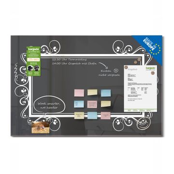 Glas Magnettafel im Querformat Motiv Zierrahmen Grau-Weiß