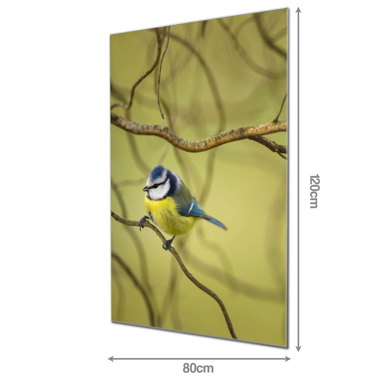Glas Magnettafel im Hochformat Blaumeise im Baum