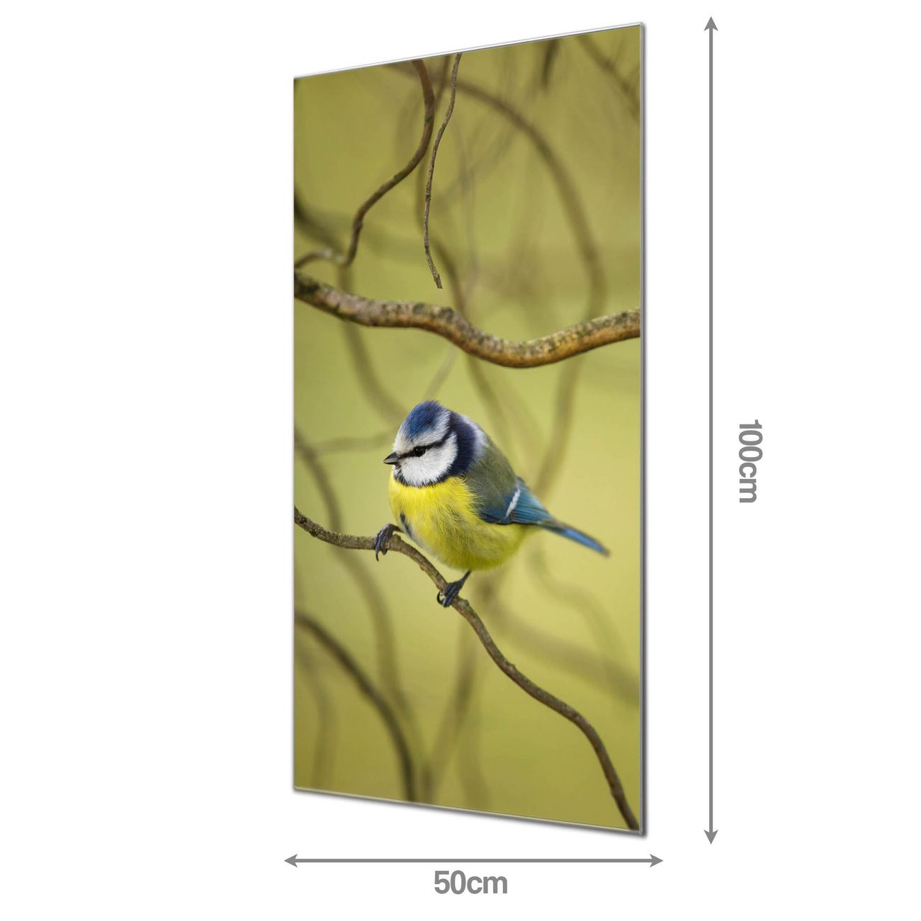Glas Magnettafel im Hochformat Blaumeise im Baum