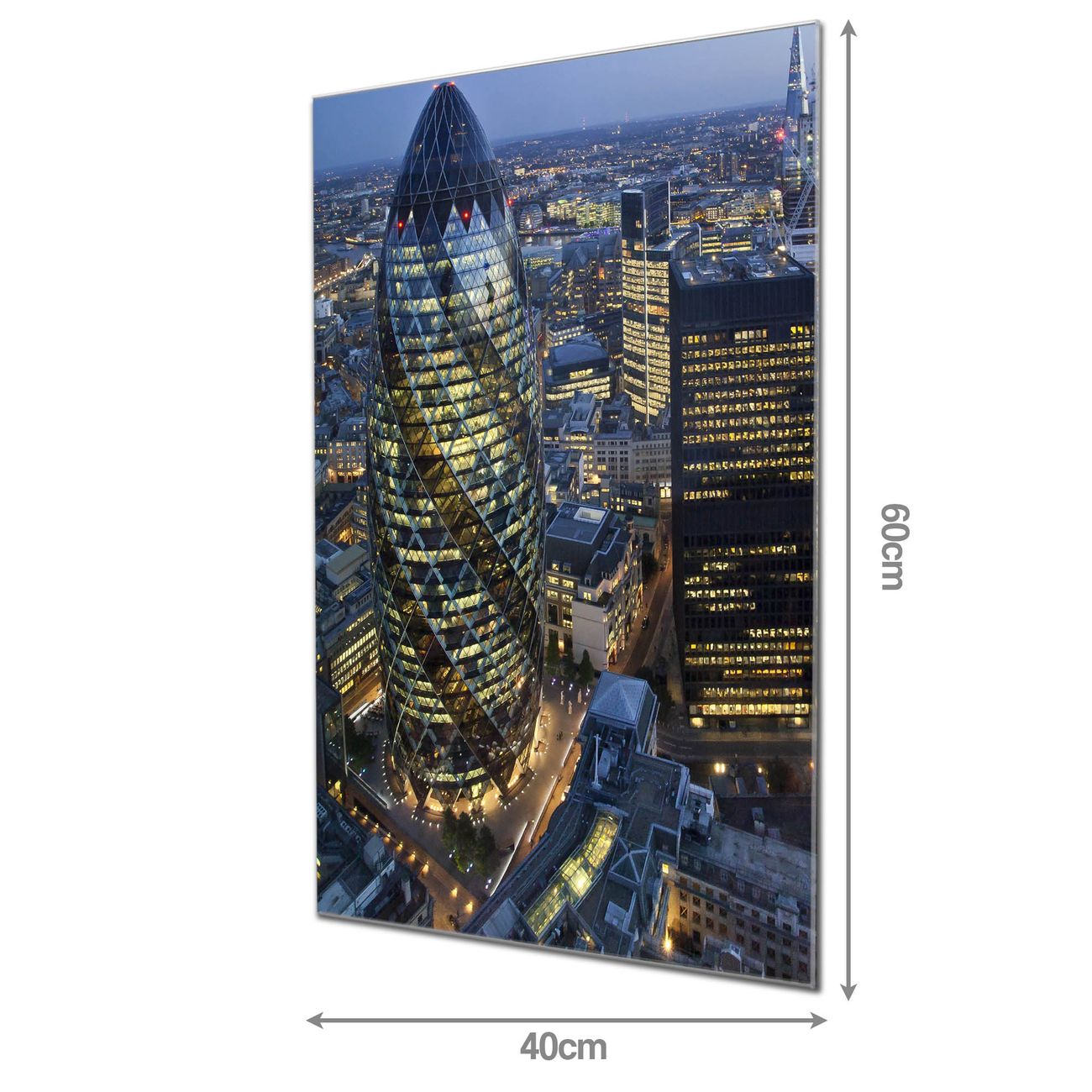 Material: 4mm Sicherheitsglas mit Metallrückwand Eigenschaften: beschreibbar, magnetisch, kratzfest Maße: 40x60x0,6cm, 3,60 kg schwer Motiv Nummer 12408 City Of London Zubehör: inklusive 4 Neodym-Magnete