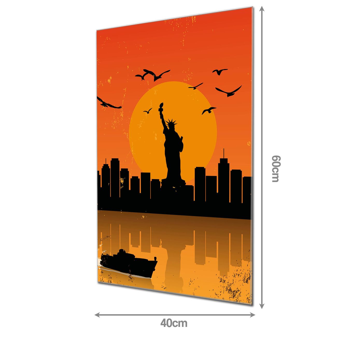 Material: 4mm Sicherheitsglas mit Metallrückwand Eigenschaften: beschreibbar, magnetisch, kratzfest Maße: 40x60x0,6cm, 3,60 kg schwer Motiv Nummer 12982 City Poster New York Zubehör: inklusive 4 Neodym-Magnete