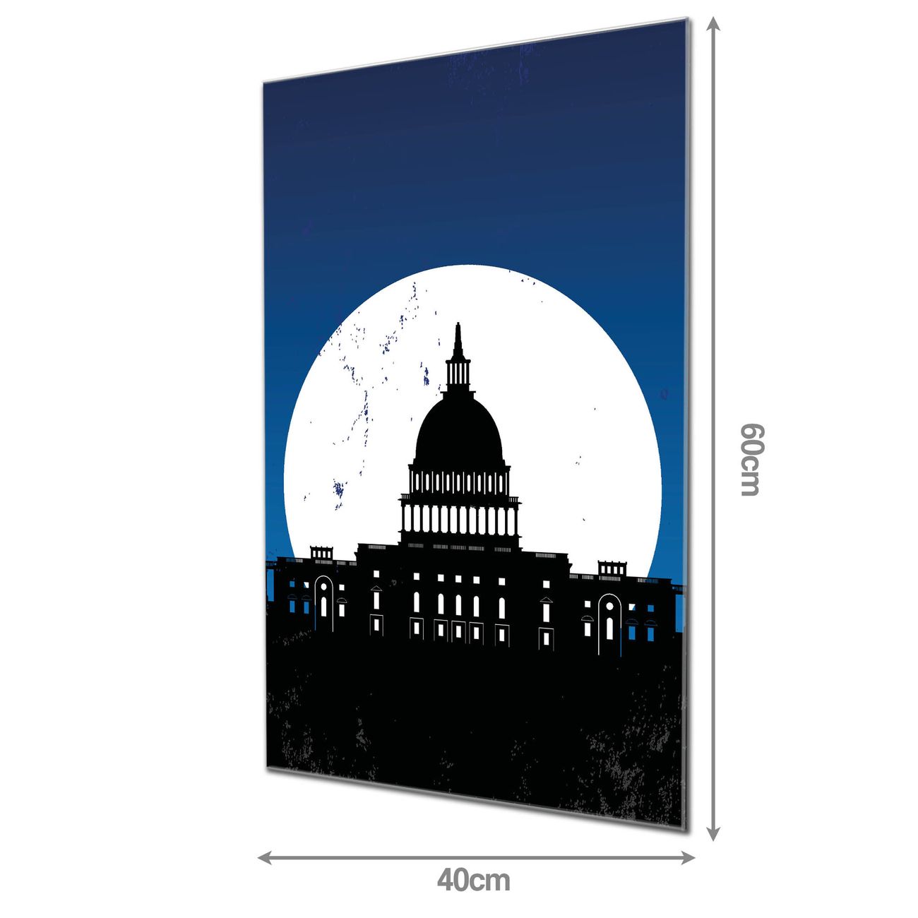 Material: 4mm Sicherheitsglas mit Metallrückwand Eigenschaften: beschreibbar, magnetisch, kratzfest Maße: 40x60x0,6cm, 3,60 kg schwer Motiv Nummer 12985 City Poster Washington Zubehör: inklusive 4 Neodym-Magnete