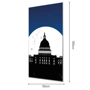 Material: 4mm Sicherheitsglas mit Metallrückwand Eigenschaften: beschreibbar, magnetisch, kratzfest Maße: 50x100x0,6cm, 7,50 kg schwer Motiv Nummer 12985 City Poster Washington Zubehör: inklusive 4 Neodym-Magnete
