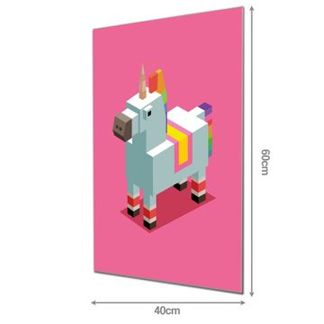 Material: 4mm Sicherheitsglas mit Metallrückwand Eigenschaften: beschreibbar, magnetisch, kratzfest Maße: 40x60x0,6cm, 3,60 kg schwer Motiv Nummer 12948 Einhorn Block Zubehör: inklusive 4 Neodym-Magnete