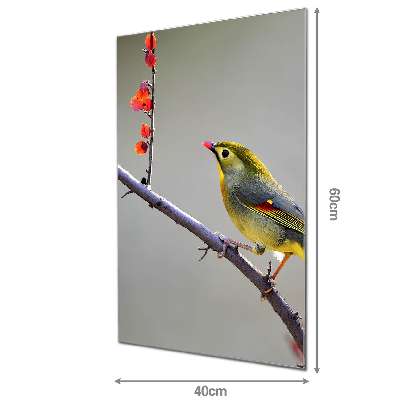 Material: 4mm Sicherheitsglas mit Metallrückwand Eigenschaften: beschreibbar, magnetisch, kratzfest Maße: 40x60x0,6cm, 3,60 kg schwer Motiv Nummer 12978 Herbst Vogel Zubehör: inklusive 4 Neodym-Magnete