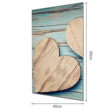 Material: 4mm Sicherheitsglas mit Metallrückwand Eigenschaften: beschreibbar, magnetisch, kratzfest Maße: 40x60x0,6cm, 3,60 kg schwer Motiv Nummer 12981 Holz Herzen Zubehör: inklusive 4 Neodym-Magnete