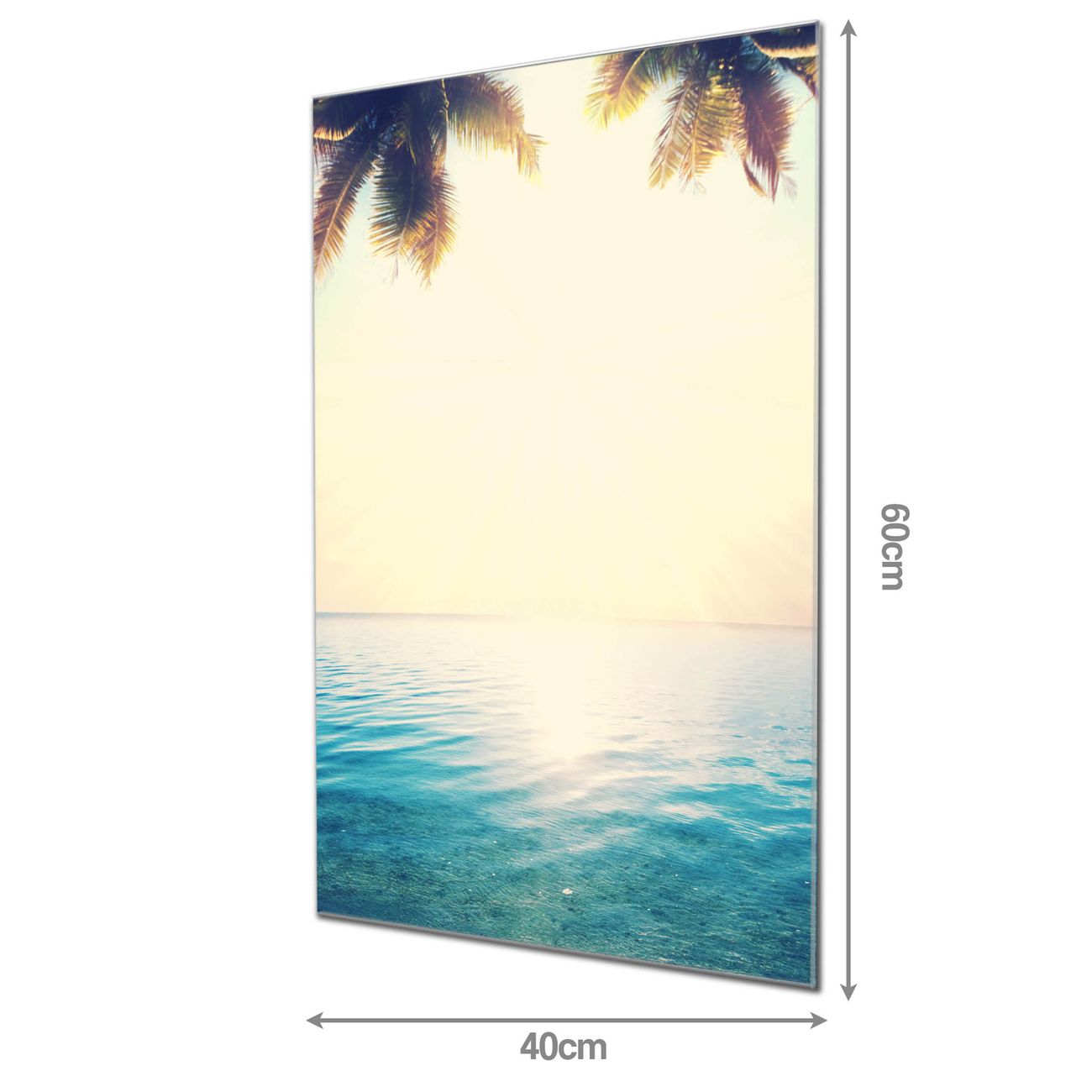 Material: 4mm Sicherheitsglas mit Metallrückwand Eigenschaften: beschreibbar, magnetisch, kratzfest Maße: 40x60x0,6cm, 3,60 kg schwer Motiv Nummer 12980 Paradis Zubehör: inklusive 4 Neodym-Magnete