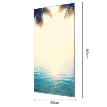 Material: 4mm Sicherheitsglas mit Metallrückwand Eigenschaften: beschreibbar, magnetisch, kratzfest Maße: 50x100x0,6cm, 7,50 kg schwer Motiv Nummer 12980 Paradis Zubehör: inklusive 4 Neodym-Magnete