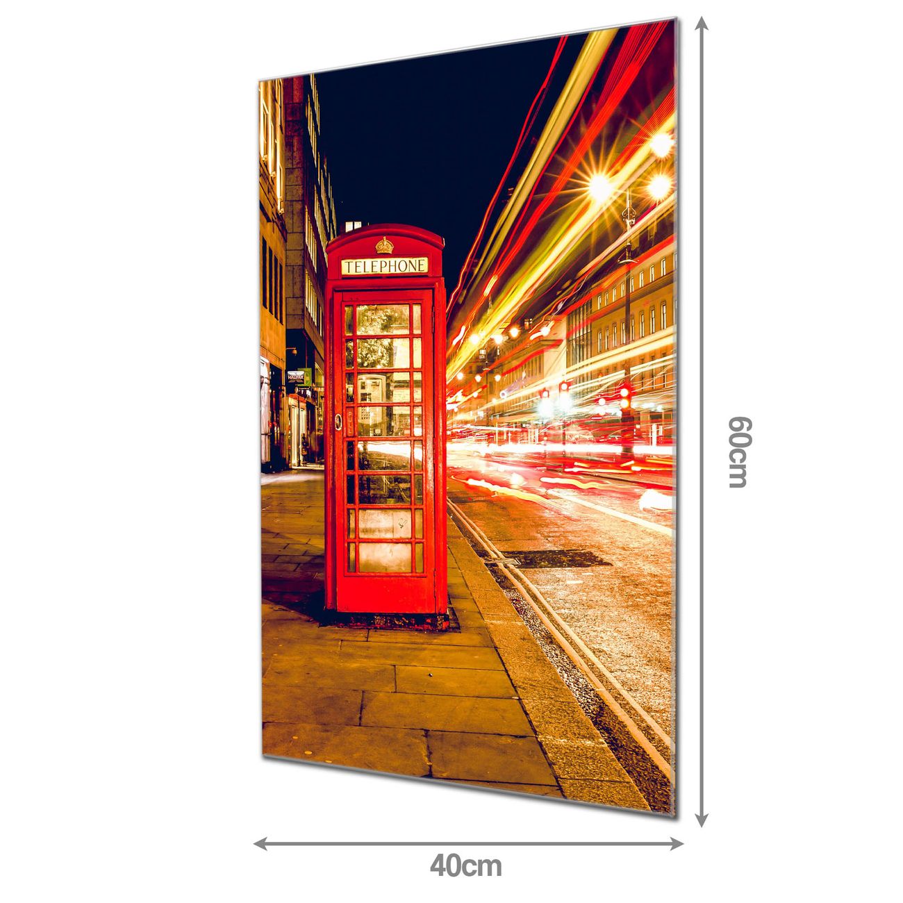 Material: 4mm Sicherheitsglas mit Metallrückwand Eigenschaften: beschreibbar, magnetisch, kratzfest Maße: 40x60x0,6cm, 3,60 kg schwer Motiv Nummer 12992 Red Telephone Trafic Zubehör: inklusive 4 Neodym-Magnete