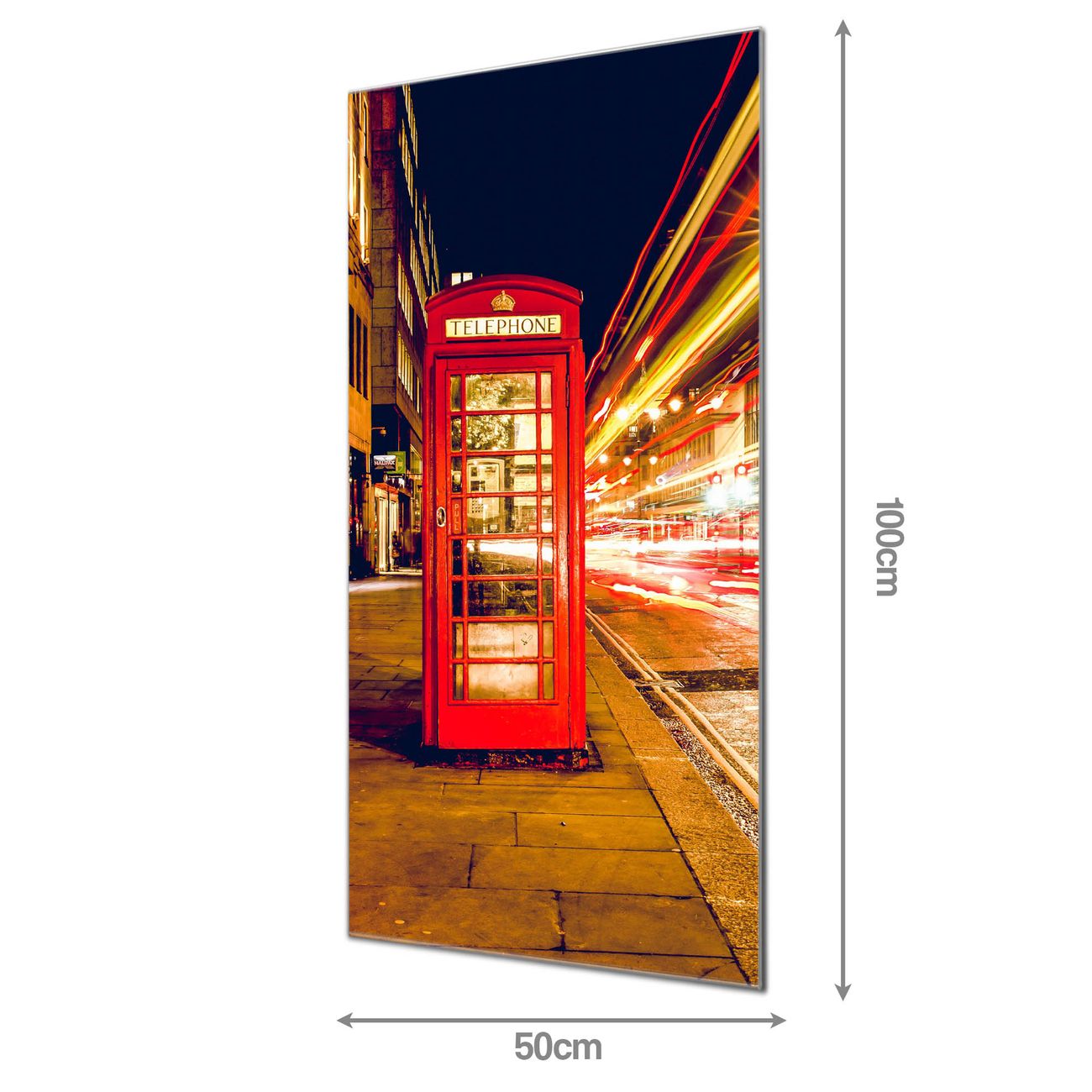 Material: 4mm Sicherheitsglas mit Metallrückwand Eigenschaften: beschreibbar, magnetisch, kratzfest Maße: 50x100x0,6cm, 7,50 kg schwer Motiv Nummer 12992 Red Telephone Trafic Zubehör: inklusive 4 Neodym-Magnete