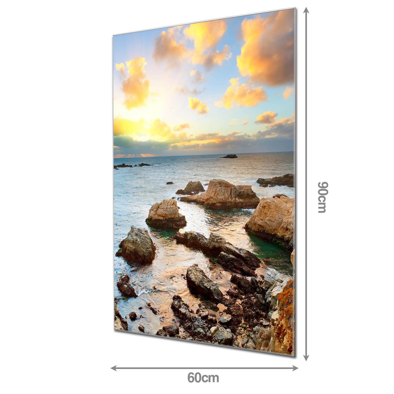 Material  4mm Sicherheitsglas mit Metallrückwand Eigenschaften  beschreibbar, magnetisch, kratzfest Maße  60x90x0,6cm, 8,10 kg schwer Motiv  Nummer 12989 Sonnenaufgang am Meer Zubehör  inklusive 4 Neodym-Magnete