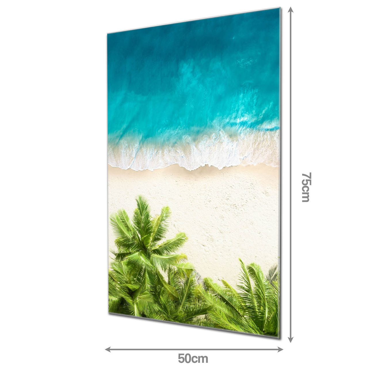 Material: 4mm Sicherheitsglas mit Metallrückwand Eigenschaften: beschreibbar, magnetisch, kratzfest Maße: 50x75x0,6cm, 5,63 kg schwer Motiv Nummer 12868 Strandtag Zubehör: inklusive 4 Neodym-Magnete