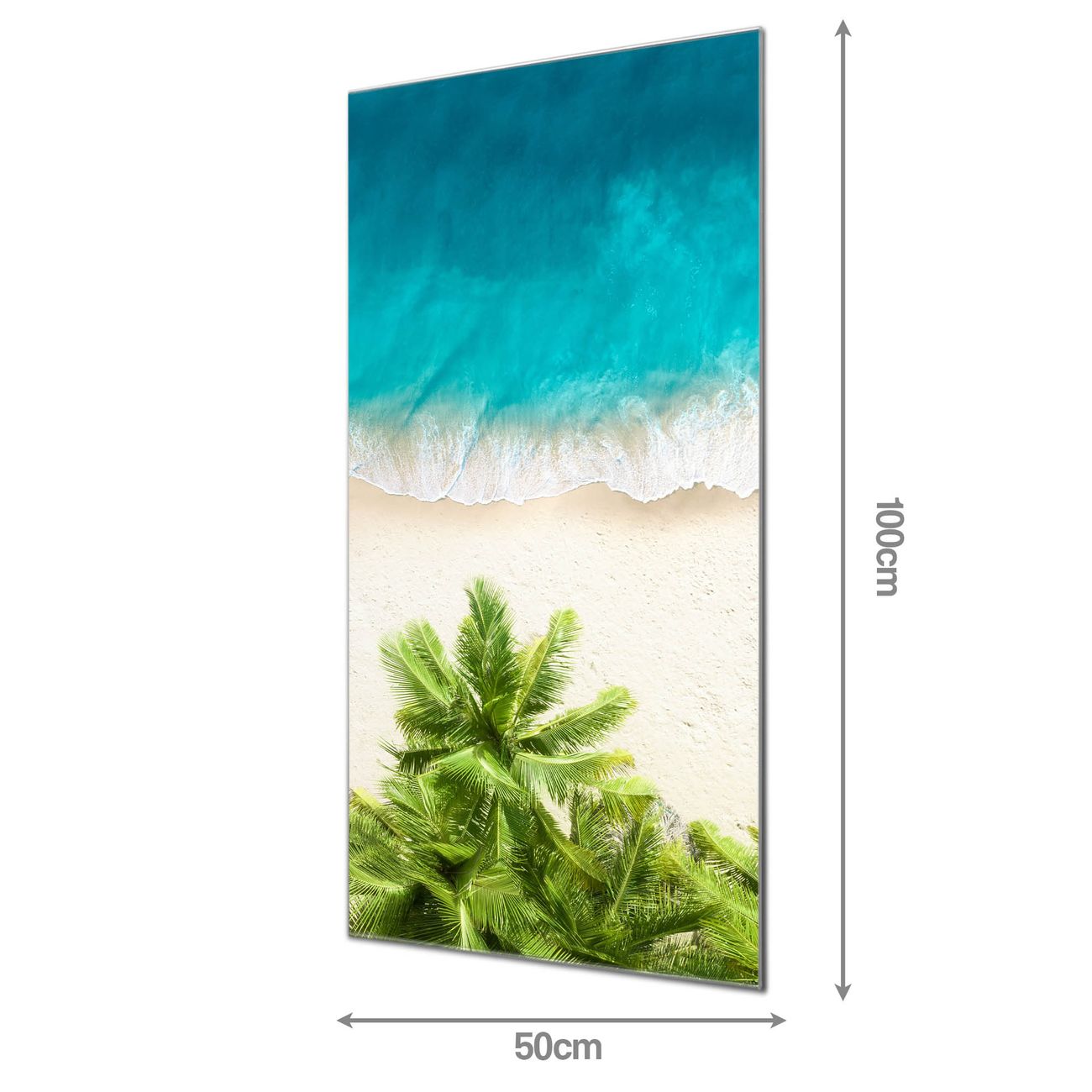 Material: 4mm Sicherheitsglas mit Metallrückwand Eigenschaften: beschreibbar, magnetisch, kratzfest Maße: 50x100x0,6cm, 7,50 kg schwer Motiv Nummer 12868 Strandtag Zubehör: inklusive 4 Neodym-Magnete