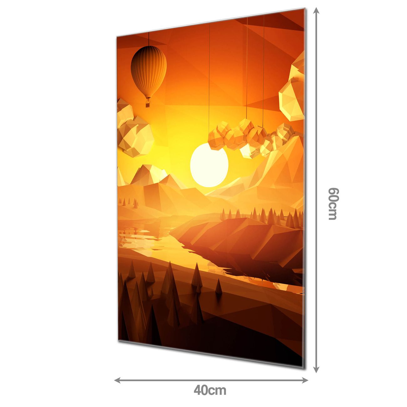 Material: 4mm Sicherheitsglas mit Metallrückwand Eigenschaften: beschreibbar, magnetisch, kratzfest Maße: 40x60x0,6cm, 3,60 kg schwer Motiv Nummer 12922 Sunset Zubehör: inklusive 4 Neodym-Magnete