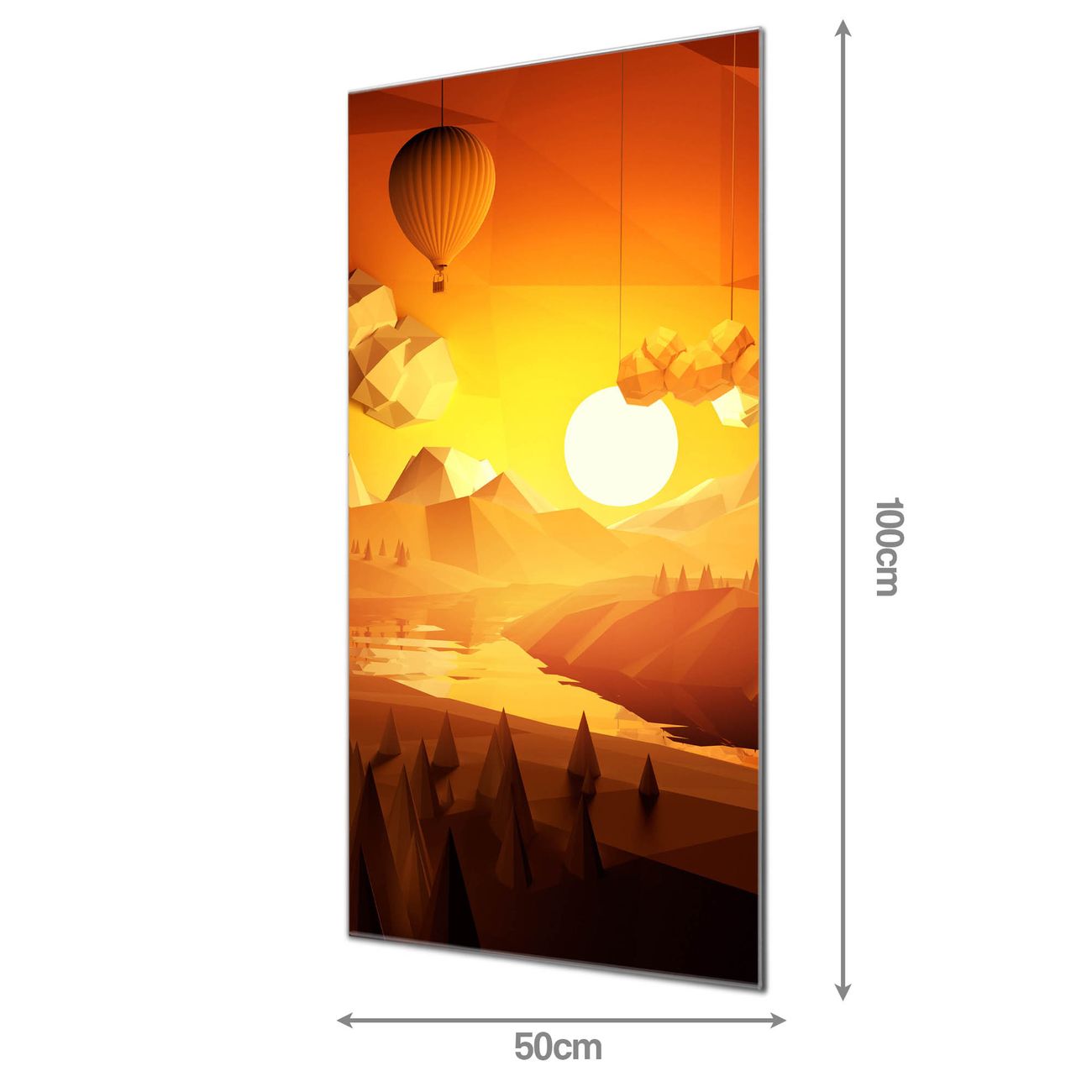 Material: 4mm Sicherheitsglas mit Metallrückwand Eigenschaften: beschreibbar, magnetisch, kratzfest Maße: 50x100x0,6cm, 7,50 kg schwer Motiv Nummer 12922 Sunset Zubehör: inklusive 4 Neodym-Magnete
