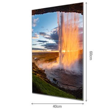 Material: 4mm Sicherheitsglas mit Metallrückwand Eigenschaften: beschreibbar, magnetisch, kratzfest Maße: 40x60x0,6cm, 3,60 kg schwer Motiv Nummer 12987 Wasserfall im Sonnenlicht Zubehör: inklusive 4 Neodym-Magnete