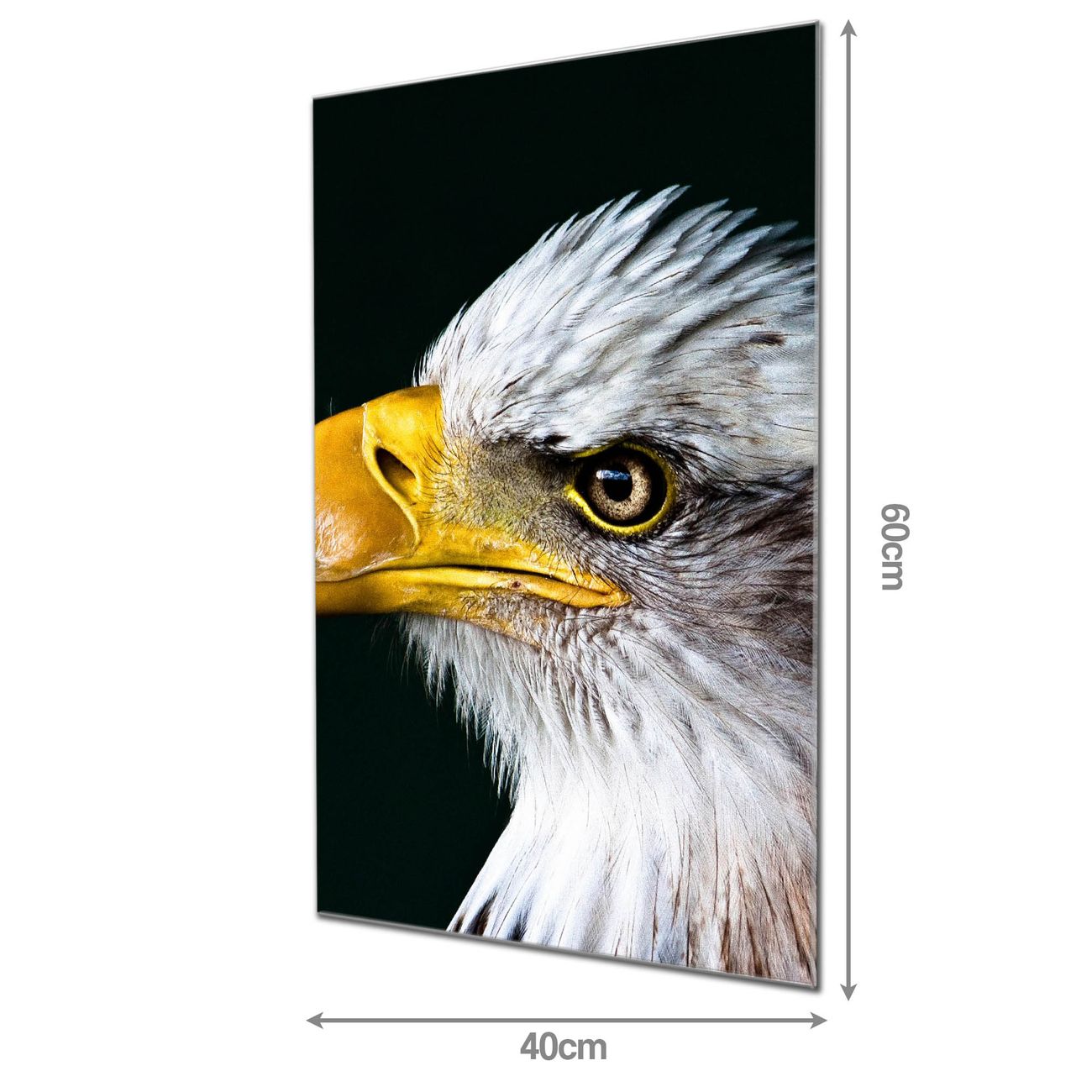Material: 4mm Sicherheitsglas mit Metallrückwand Eigenschaften: beschreibbar, magnetisch, kratzfest Maße: 40x60x0,6cm, 3,60 kg schwer Motiv Nummer 12986 Weißkopfseeadler Zubehör: inklusive 4 Neodym-Magnete