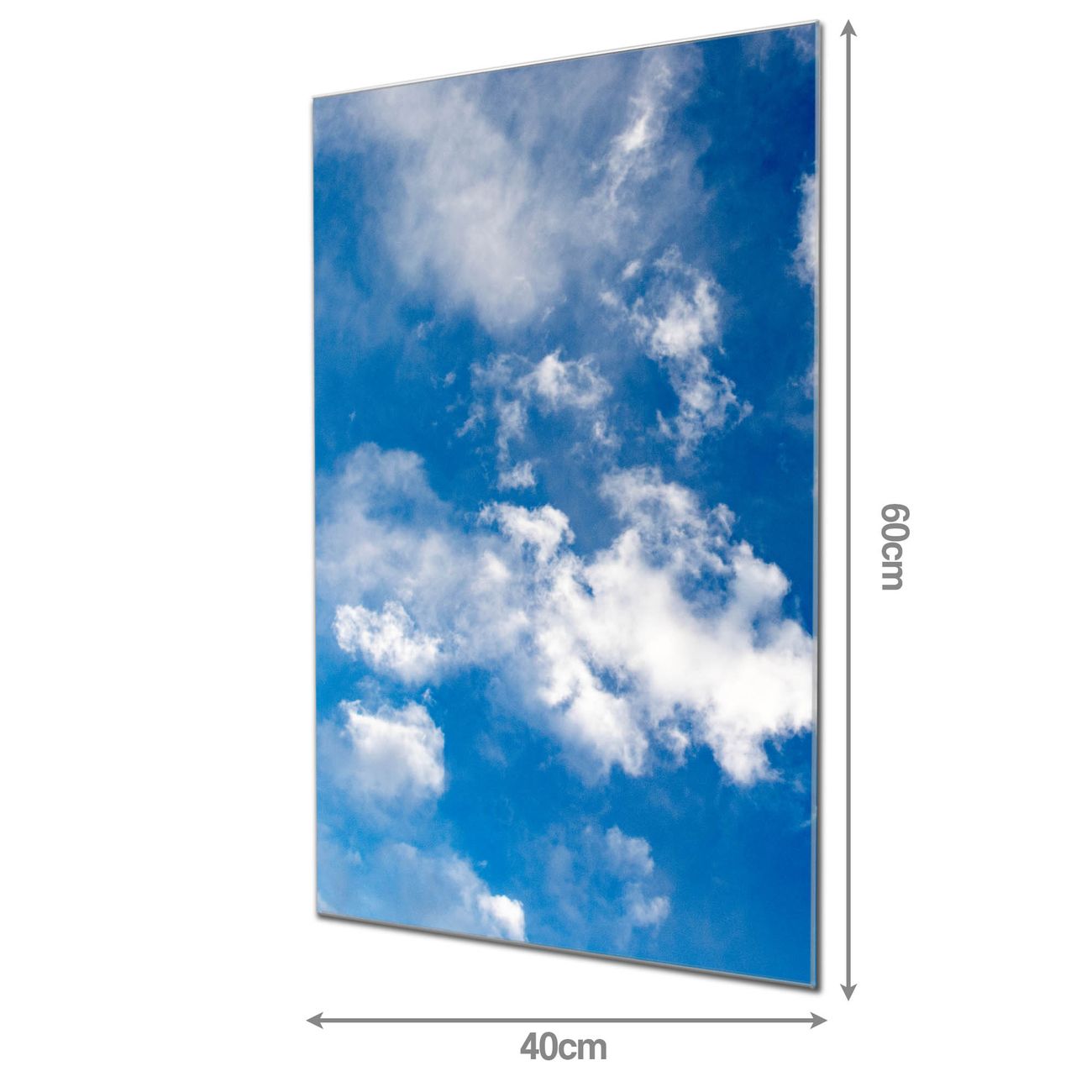 Material: 4mm Sicherheitsglas mit Metallrückwand Eigenschaften: beschreibbar, magnetisch, kratzfest Maße: 40x60x0,6cm, 3,60 kg schwer Motiv Nummer 12831 Wolken 2 Zubehör: inklusive 4 Neodym-Magnete
