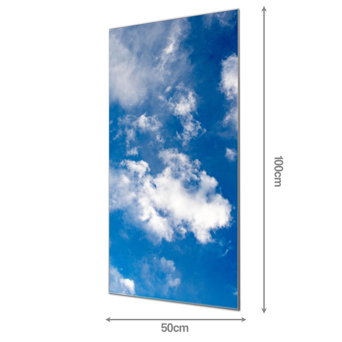 Material: 4mm Sicherheitsglas mit Metallrückwand Eigenschaften: beschreibbar, magnetisch, kratzfest Maße: 50x100x0,6cm, 7,50 kg schwer Motiv Nummer 12831 Wolken 2 Zubehör: inklusive 4 Neodym-Magnete