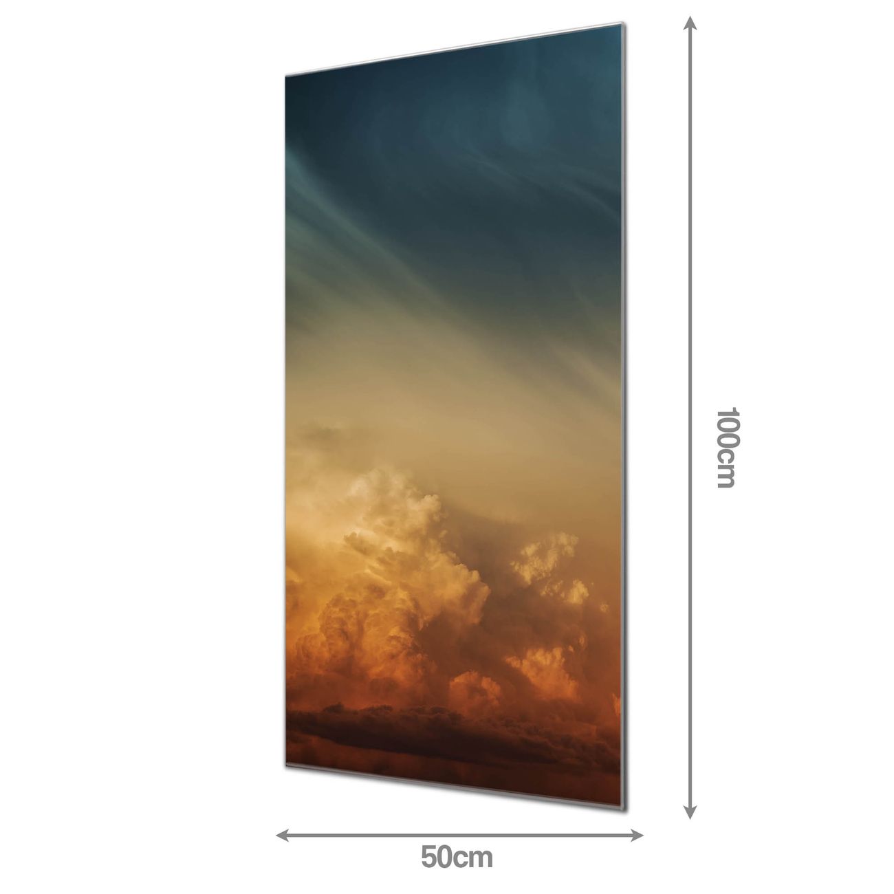 Material: 4mm Sicherheitsglas mit Metallrückwand Eigenschaften: beschreibbar, magnetisch, kratzfest Maße: 50x100x0,6cm, 7,50 kg schwer Motiv Nummer 12846 Wolken in der Dämmerung Zubehör: inklusive 4 Neodym-Magnete
