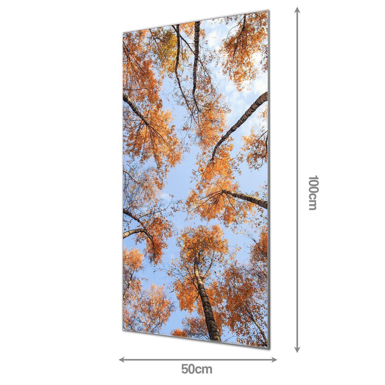 Material: 4mm Sicherheitsglas mit Metallrückwand Eigenschaften: beschreibbar, magnetisch, kratzfest Maße: 50x100x0,6cm, 7,50 kg schwer Motiv Nummer 12876 Zwischen Bäumen 4 Zubehör: inklusive 4 Neodym-Magnete