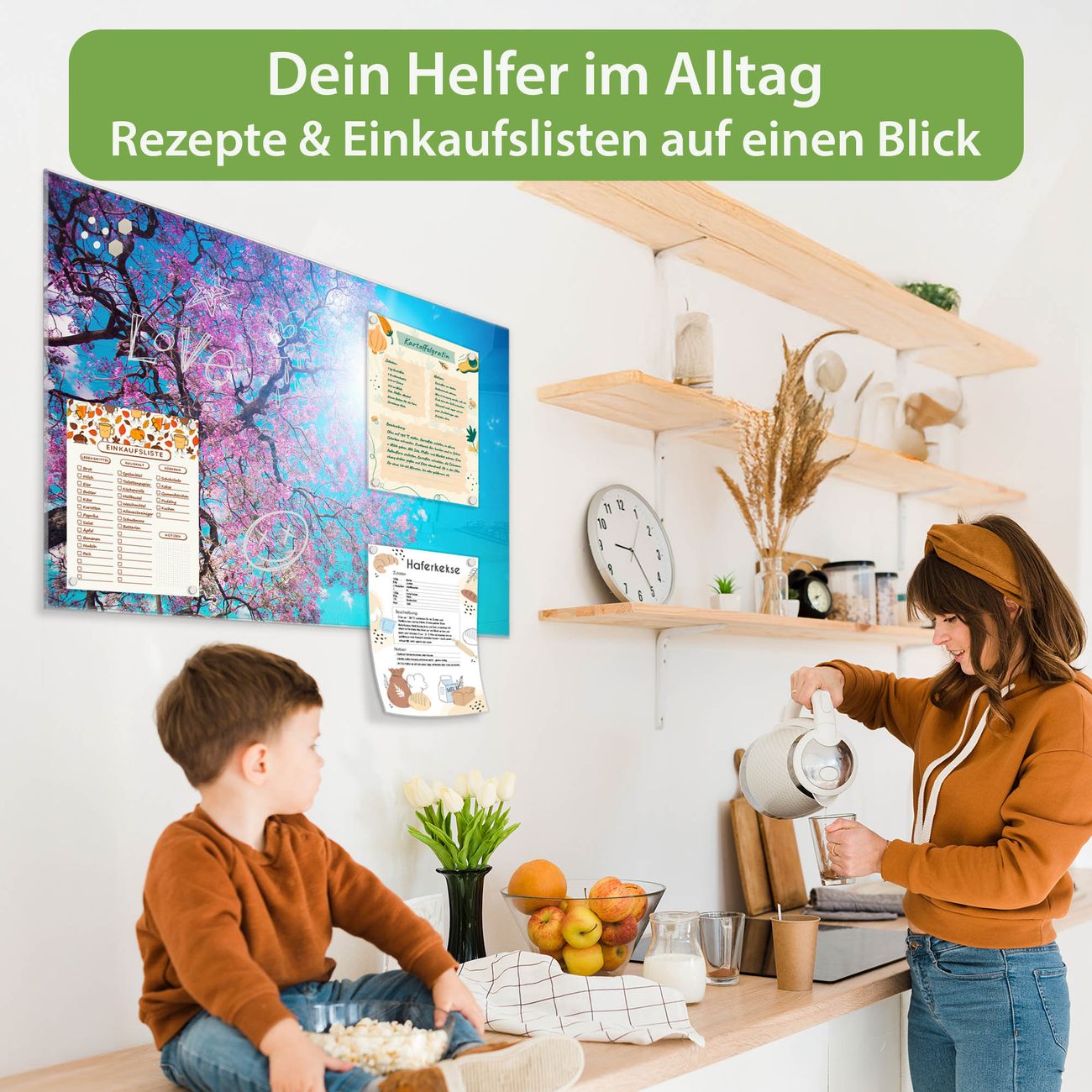 Auf der glatten Glasoberfläche lassen sich Termine, Rezepte oder Notizen ganz einfach mit Kreidestiften festhalten und rückstandslos entfernen. Starke Neodym-Magnete halten Ihre wichtigsten Erinnerungen sicher an Ort und Stelle. So entsteht Ihre ganz persönliche Ideenwand - jeden Tag neu.