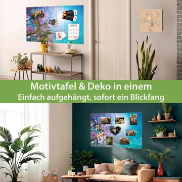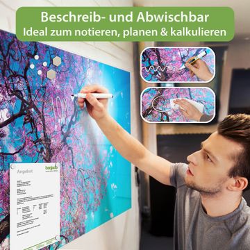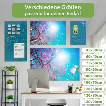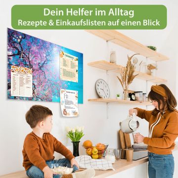 Material: 4mm Sicherheitsglas mit Metallrückwand Eigenschaften: beschreibbar, magnetisch, kratzfest Maße: 90x60x0,6cm, 8,10kg schwer Motiv Nummer 12924 Baumkrone 2 Zubehör: inklusive 4 Neodym-Magnete