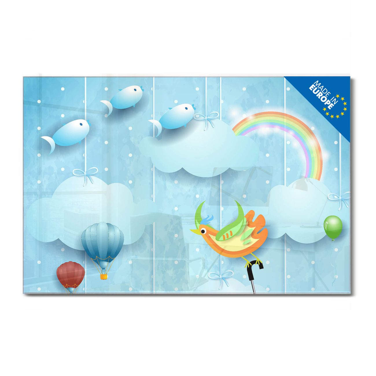 Material: 4mm Sicherheitsglas mit Metallrückwand Eigenschaften: beschreibbar, magnetisch, kratzfest Maße: 45x30x0,6cm, 2,03kg schwer Motiv Nummer 12858 fliegender Regenschirm Zubehör: inklusive 4 Neodym-Magnete
