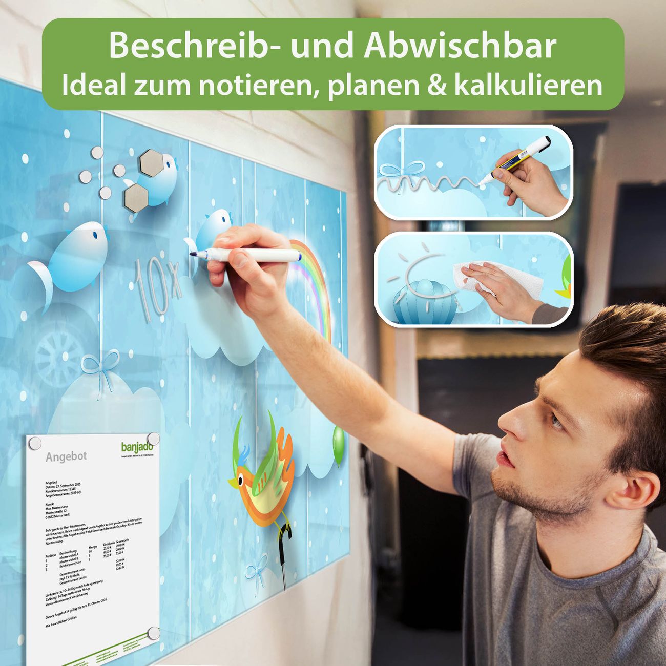 Jede Glas Magnettafel wird in unserer Werkstatt von Hand gefertigt und sorgfältig geprüft. So erhalten Sie ein echtes Qualitätsprodukt, das Funktion und Ästhetik perfekt vereint.?? Warum banjado?