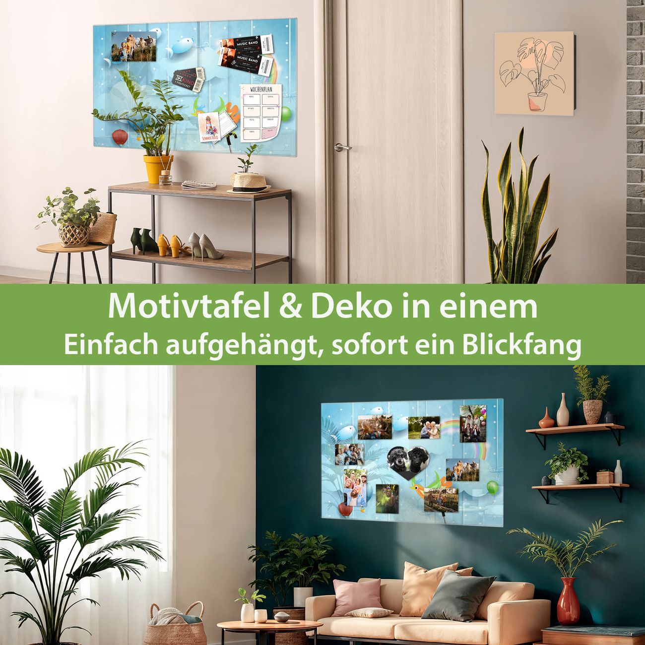 Die banjado Glas Magnettafel mit dem Motiv Motiv fliegender Regenschirm verbindet Funktionalität mit Stil. Sie ersetzt das Zettelchaos durch klare Strukturen und bringt dabei eine warme, natürliche Atmosphäre in Ihr Zuhause. Ob im Büro, in der Küche oder im Eingangsbereich - dieses Design-Board zieht Blicke an und sorgt für Ordnung mit Charakter.
