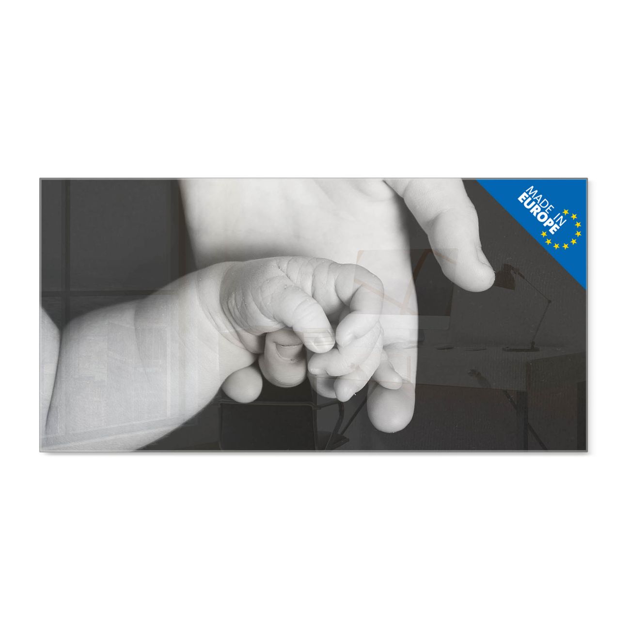 Material: 4mm Sicherheitsglas mit Metallrückwand Eigenschaften: beschreibbar, magnetisch, kratzfest Maße: 120x60x0,6cm, 10,80kg schwer Motiv Nummer 12928 Hands Zubehör: inklusive 4 Neodym-Magnete
