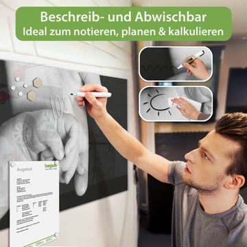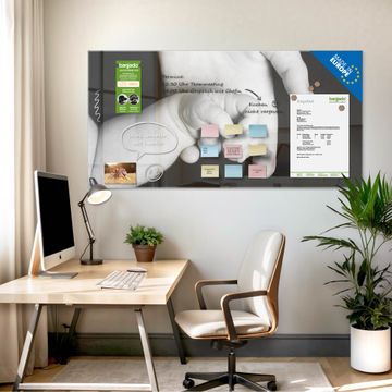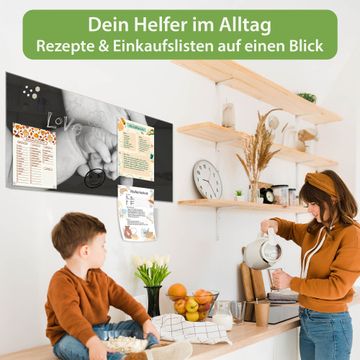 Auf der glatten Glasoberfläche lassen sich Termine, Rezepte oder Notizen ganz einfach mit Kreidestiften festhalten und rückstandslos entfernen. Starke Neodym-Magnete halten Ihre wichtigsten Erinnerungen sicher an Ort und Stelle. So entsteht Ihre ganz persönliche Ideenwand - jeden Tag neu.