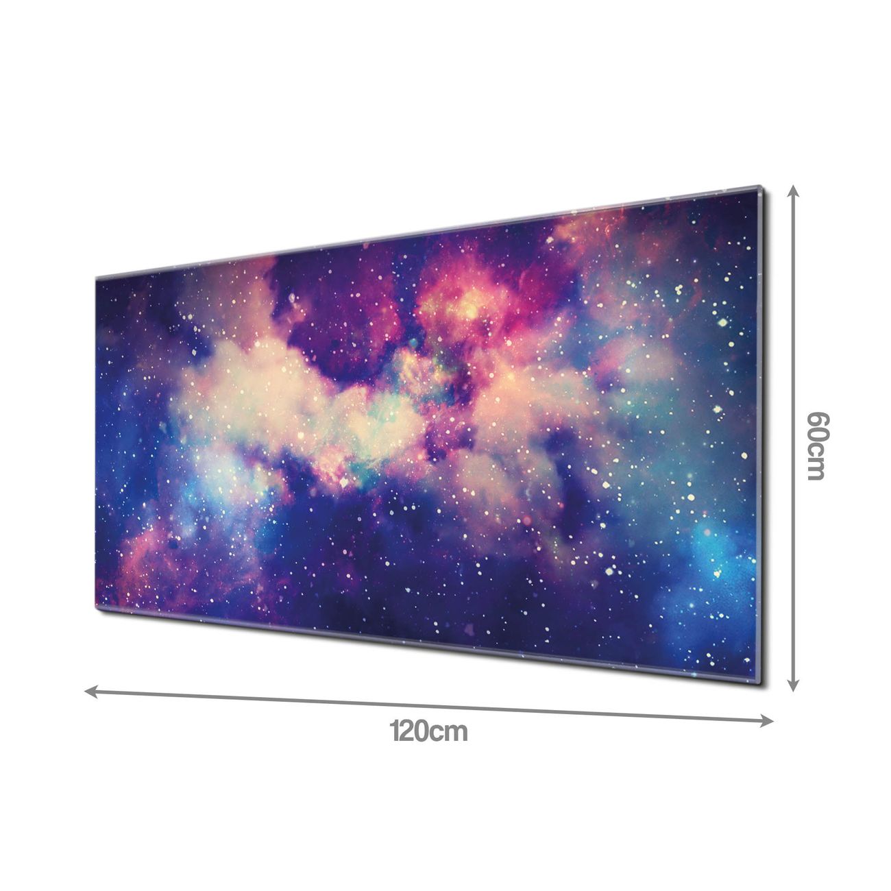 Material: 4mm Sicherheitsglas mit Metallrückwand Eigenschaften: beschreibbar, magnetisch, kratzfest Maße: 120x60x0,6cm, 10,80kg schwer Motiv Nummer 12843 Im Weltall 1 Zubehör: inklusive 4 Neodym-Magnete