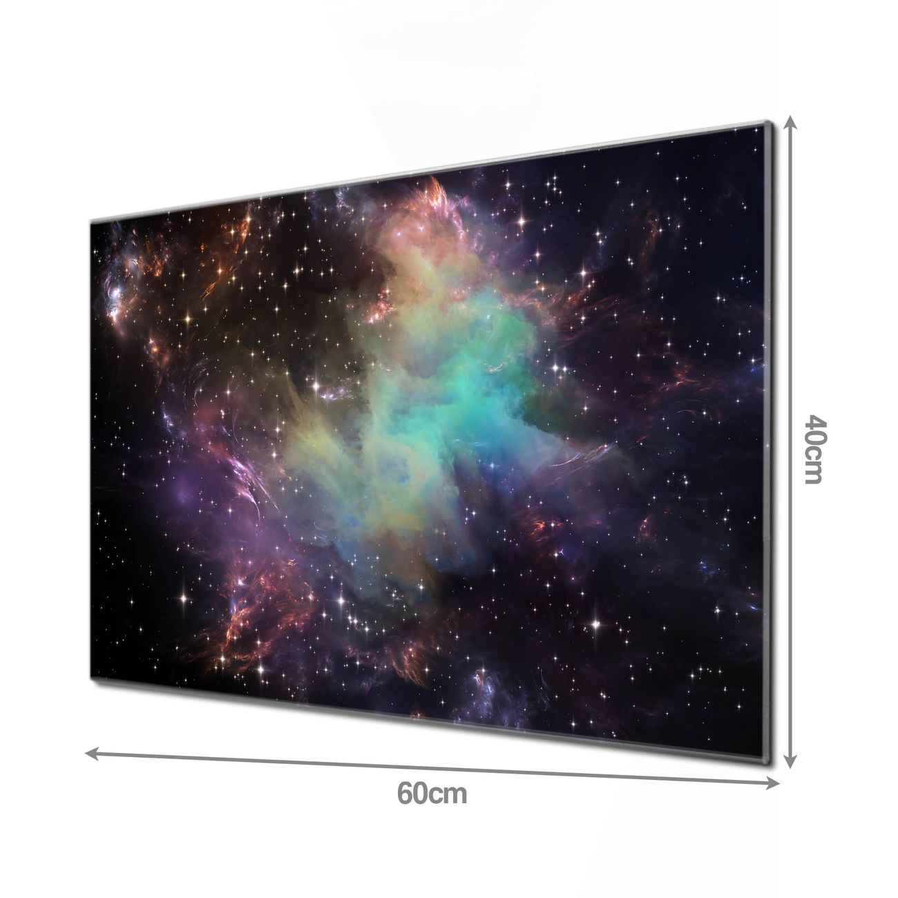 Material: 4mm Sicherheitsglas mit Metallrückwand Eigenschaften: beschreibbar, magnetisch, kratzfest Maße: 60x40x0,6cm, 3,6kg schwer Motiv Nummer 12844 Im Weltall 2 Zubehör: inklusive 4 Neodym-Magnete