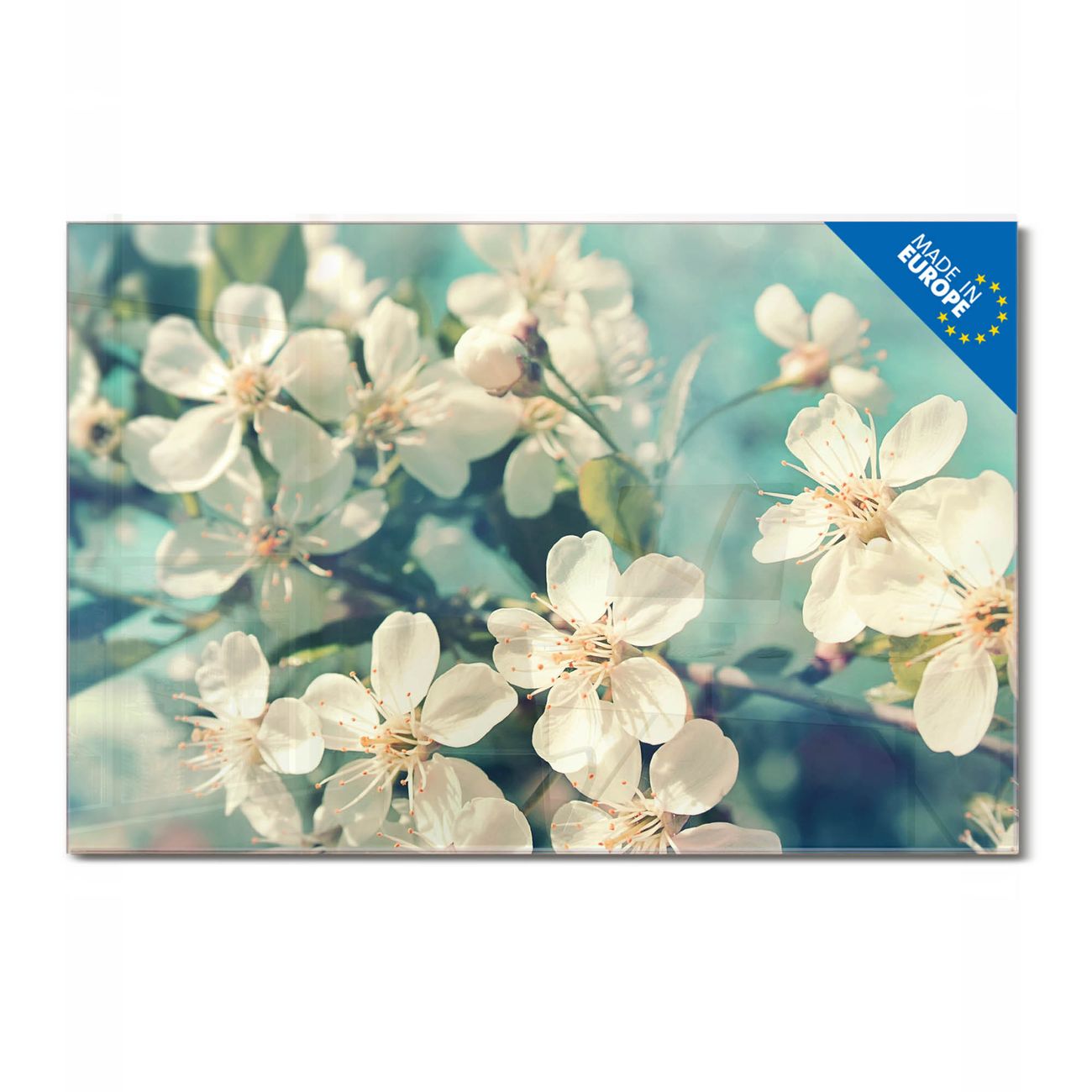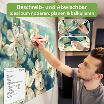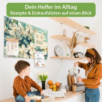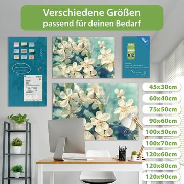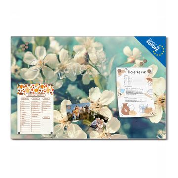Material: 4mm Sicherheitsglas mit Metallrückwand Eigenschaften: beschreibbar, magnetisch, kratzfest Maße: 45x30x0,6cm, 2,03kg schwer Motiv Nummer 12907 Kirschblüten 2 Zubehör: inklusive 4 Neodym-Magnete