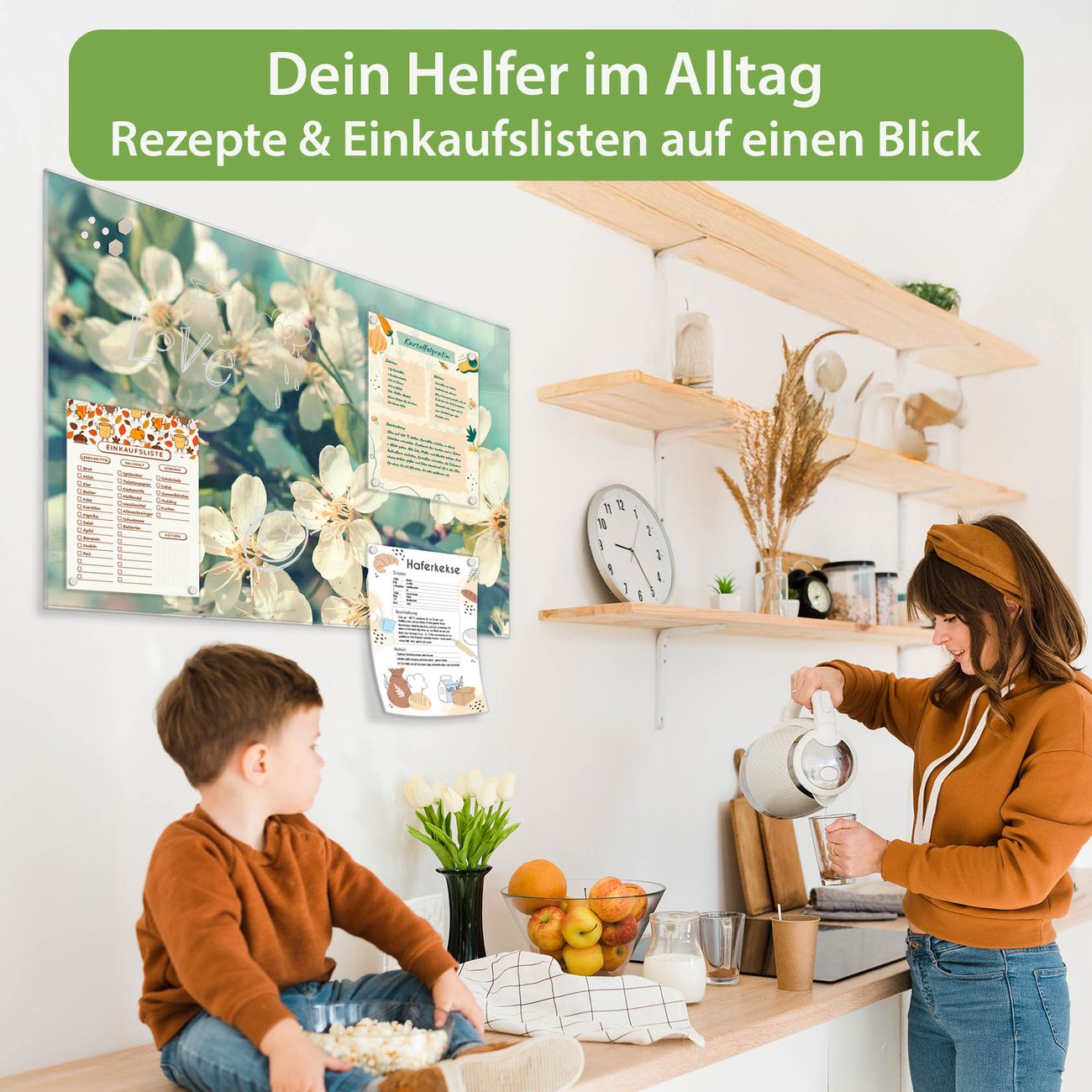 Auf der glatten Glasoberfläche lassen sich Termine, Rezepte oder Notizen ganz einfach mit Kreidestiften festhalten und rückstandslos entfernen. Starke Neodym-Magnete halten Ihre wichtigsten Erinnerungen sicher an Ort und Stelle. So entsteht Ihre ganz persönliche Ideenwand - jeden Tag neu.