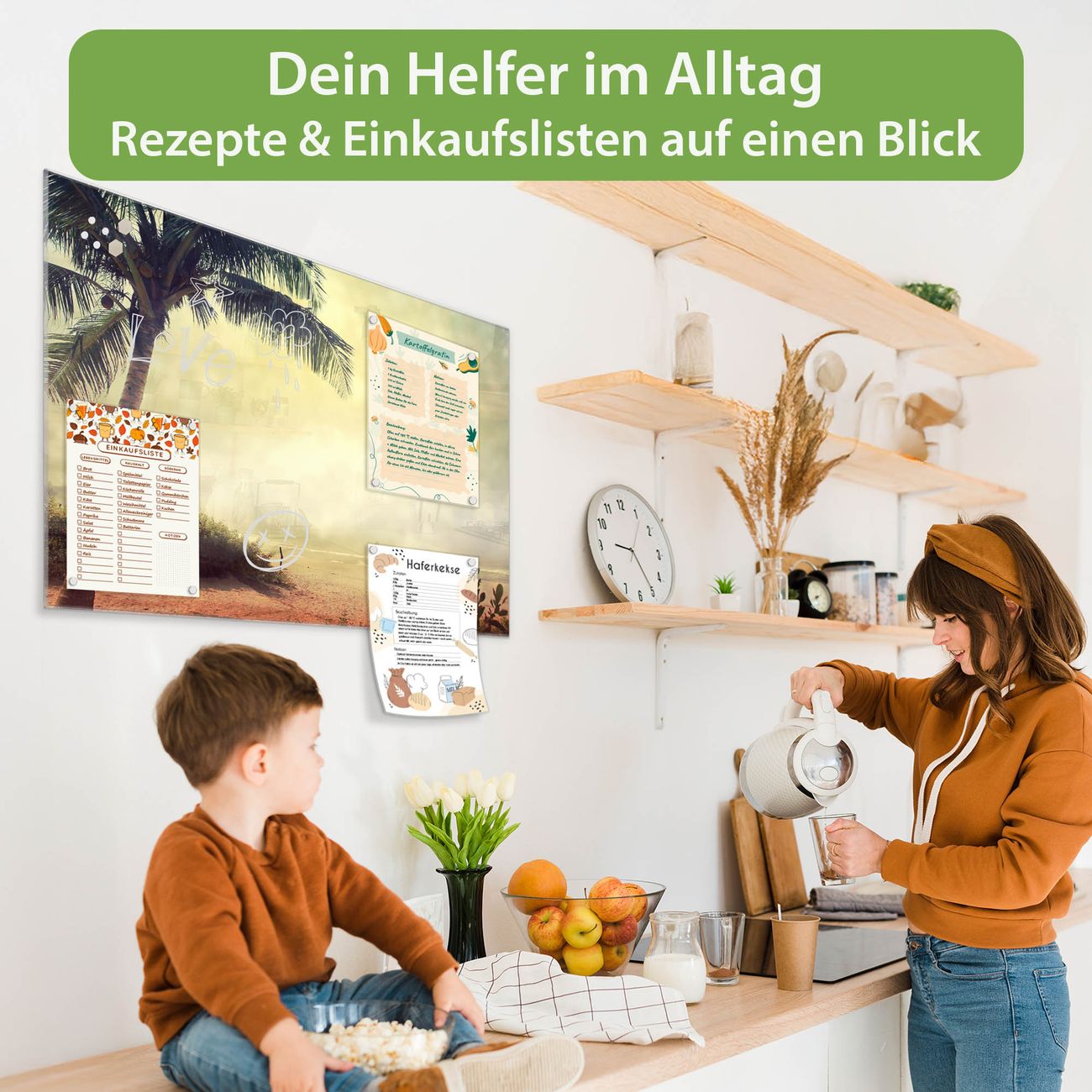 Auf der glatten Glasoberfläche lassen sich Termine, Rezepte oder Notizen ganz einfach mit Kreidestiften festhalten und rückstandslos entfernen. Starke Neodym-Magnete halten Ihre wichtigsten Erinnerungen sicher an Ort und Stelle. So entsteht Ihre ganz persönliche Ideenwand - jeden Tag neu.