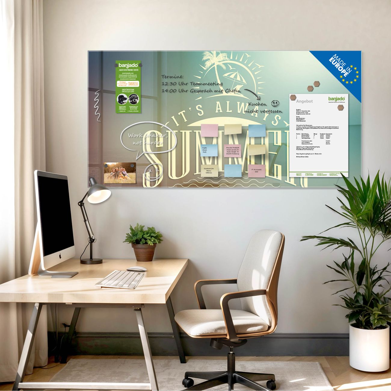Jede Glas Magnettafel wird in unserer Werkstatt von Hand gefertigt und sorgfältig geprüft. So erhalten Sie ein echtes Qualitätsprodukt, das Funktion und Ästhetik perfekt vereint.?? Warum banjado?