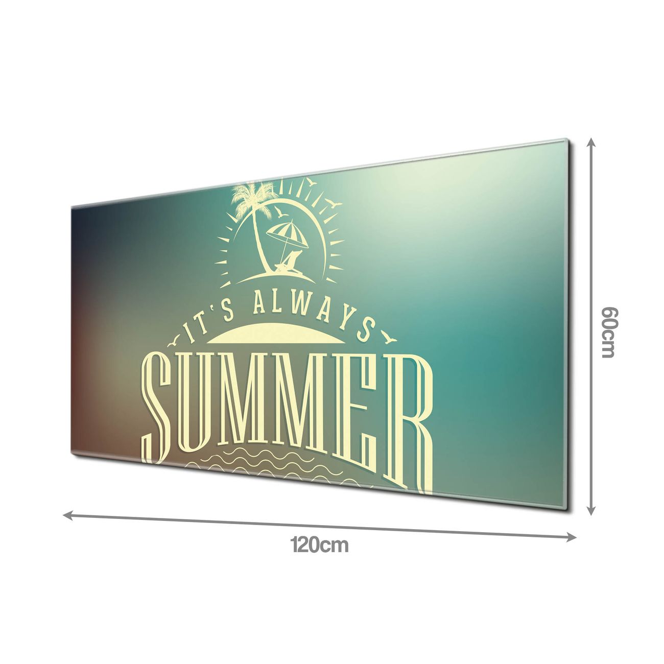 Material: 4mm Sicherheitsglas mit Metallrückwand Eigenschaften: beschreibbar, magnetisch, kratzfest Maße: 120x60x0,6cm, 10,80kg schwer Motiv Nummer 12896 Sommer Heart Zubehör: inklusive 4 Neodym-Magnete