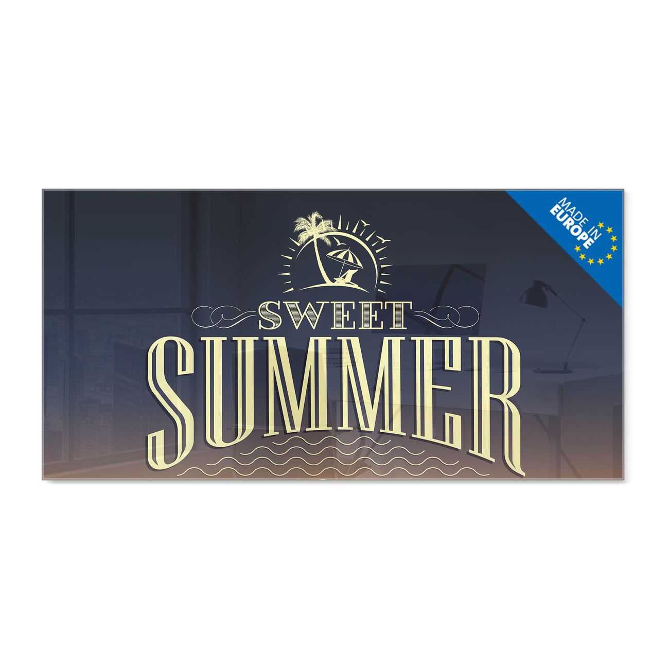 Material: 4mm Sicherheitsglas mit Metallrückwand Eigenschaften: beschreibbar, magnetisch, kratzfest Maße: 120x60x0,6cm, 10,80kg schwer Motiv Nummer 12895 Sommer Night Zubehör: inklusive 4 Neodym-Magnete