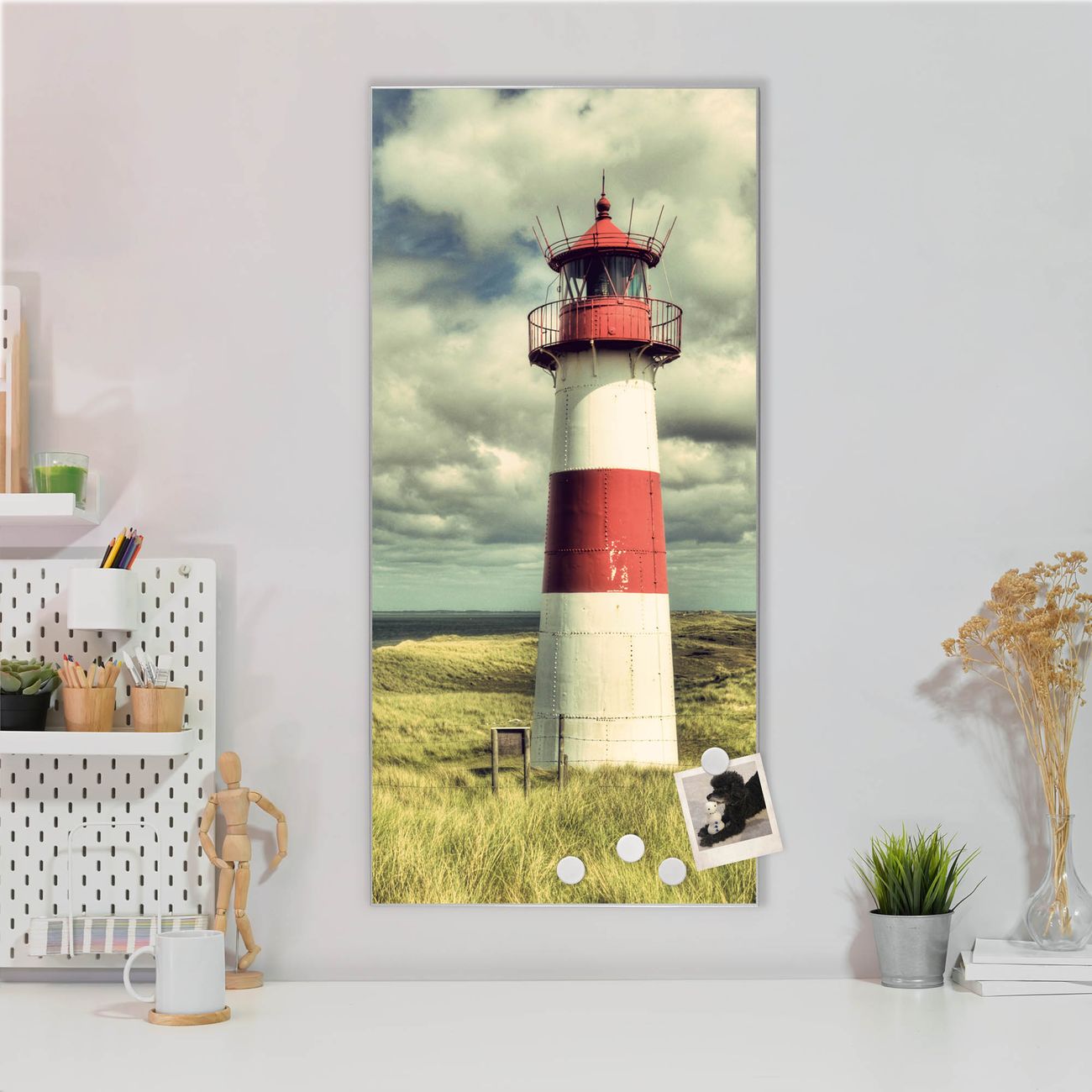 Stahl Magnettafel Hochformat 78x37cm Leuchtturm Sylt