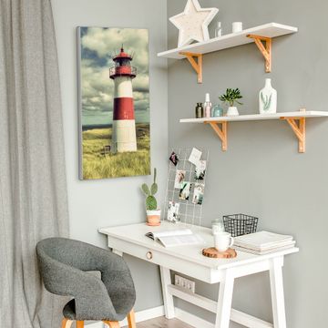 FUNKTION:  Die banjado Magnettafel mit Motiv Leuchtturm Sylt Motiv bringt Ordnung in Ihr Zettelchaos. Fotos, Termine, Notizen oder Rezepte lassen Sich hier stilvoll mit Magneten ordnen, Sie behalten alles im Blick. An der Design Magnettafel halten alle handesüblichen Magnete. DESIGN:  Die magnetische Pinnwand mit dem Motiv Motiv Leuchtturm Sylt ist ein eleganter Begleiter im Alltag. Mit dieser Memotafel aus Metall haben Sie auch ohne Notizen und Magnete ein schönes Dekoelement. Das Format bietet Ihnen ausreichend Platz um alle wichtigen Informationen im Blick zu behalten. DETAILS:  Die Magnettafel besteht aus silber-grau, weiß oder schwarzlackiertem Stahl. Sie hat eine Größe von 37 x 78 x 2cm. Es befinden sich auf der Rückseite vorgefertigte Aufhängungen die eine schnelle und unkomplizierte Anbringung ermöglichen. Das Motiv ist mit einem seidenmatten Laminat versehen und schützt so zusätzlich vor Kratzern. NUTZEN:  Sie können dieses Memoboard groß als Wandbild nutzen, es halten alle handelsüblichen Magneten daran. Die Pinnwand ist mit einem feuchten Lappen oder Schwamm abwischbar. Sie finden bei uns eine große Auswahl an passenden Magneten. BANJADO:  Wir sind ein kleines Team aus dem Herzen von Sachsen. Wir fertigen alle Artikel von Hand für Sie an, Sie erhalten keine preiswerte Importware. Auf Wunsch können Sie auch Ihr eigenes Foto auf die Magnettafel aufbringen, schreiben Sie uns an. Herzlichst, Ihr banjado-Team