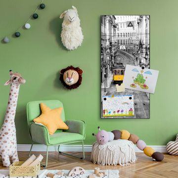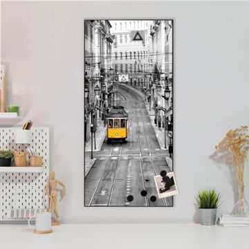 Motiv Lissabon Nr. 11113 Größe: 37x78x2cm BxHxT Gewicht: ca. 2,10 kg Material: Stahl schwarz lackiert, Premiumfolie Magnete: für Dekomagnete geeignet beschreibbar: Nein Format: Hochformat Zubehör: 4 Magnete, Schrauben und Dübel