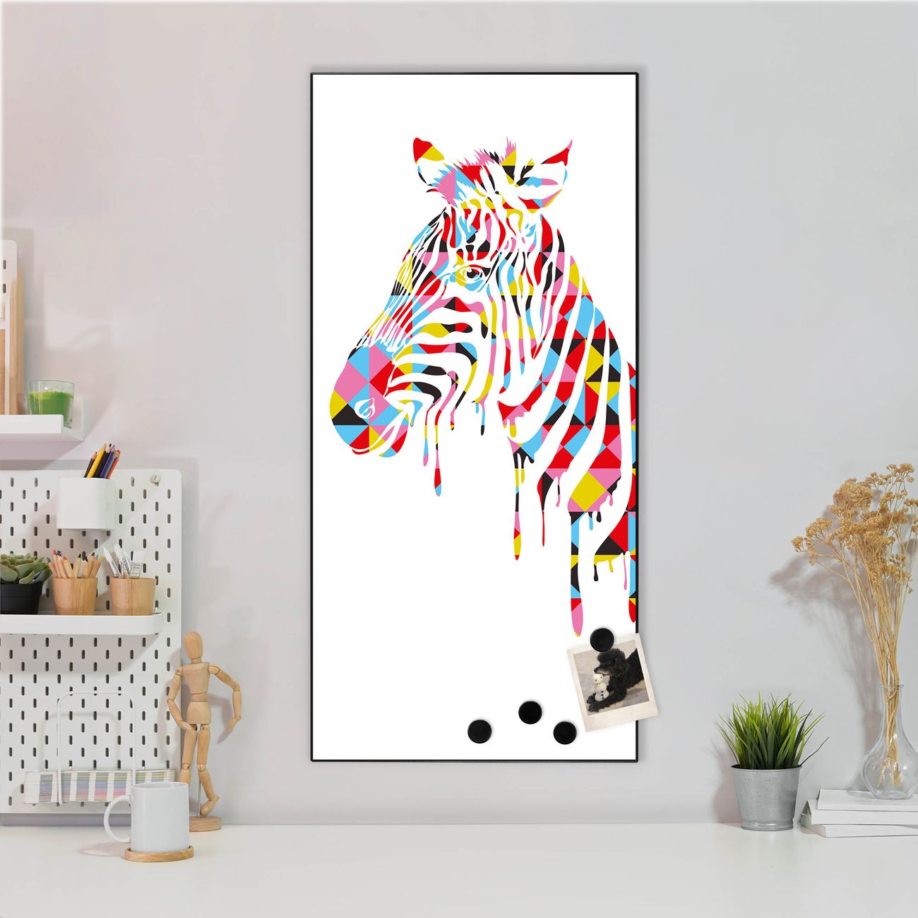 DESIGN:  Die magnetische Pinnwand mit dem Motiv Motiv Zebra ist ein eleganter Begleiter im Alltag. Mit dieser Memotafel aus Metall haben Sie auch ohne Notizen und Magnete ein schönes Dekoelement. Das Format bietet Ihnen ausreichend Platz um alle wichtigen Informationen im Blick zu behalten.
