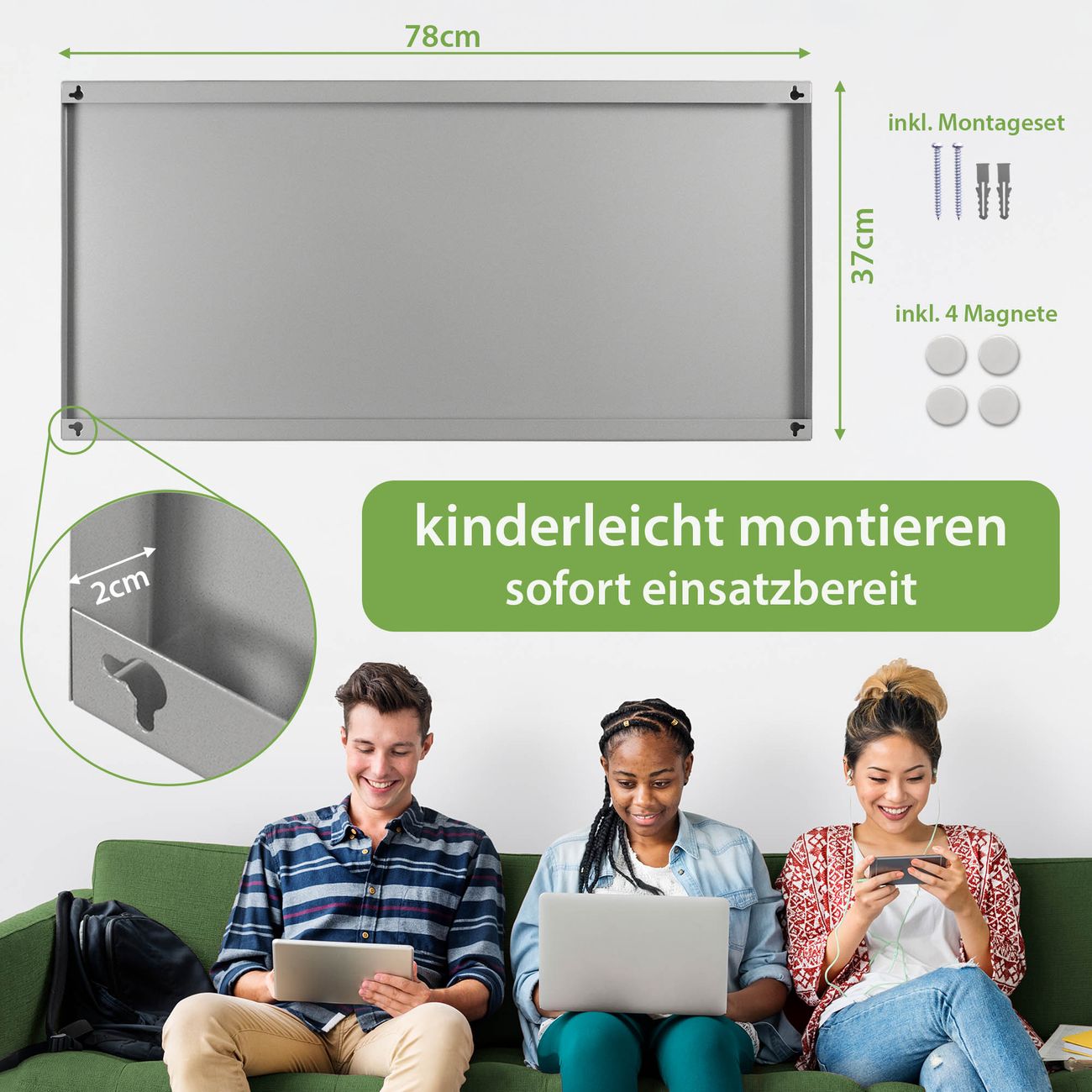 FUNKTION: Die banjado Magnettafel mit Motiv bringt Ordnung in Ihr Zettelchaos. Fotos, Termine, Notizen oder Rezepte lassen Sich hier stilvoll mit Magneten ordnen, Sie behalten alles im Blick. An der Design Magnettafel halten alle handesüblichen Magnete. DESIGN: Die magnetische Pinnwand mit dem Motiv ist ein eleganter Begleiter im Alltag. Mit dieser Memotafel aus Metall haben Sie auch ohne Notizen und Magnete ein schönes Dekoelement. Das Format bietet Ihnen ausreichend Platz um alle wichtigen Informationen im Blick zu behalten. DETAILS: Die Magnettafel besteht aus silber-grau, weiß oder schwarzlackiertem Stahl. Sie hat eine Größe von 37 x 78 x 2cm. Es befinden sich auf der Rückseite vorgefertigte Aufhängungen die eine schnelle und unkomplizierte Anbringung ermöglichen. Das Motiv ist mit einem seidenmatten Laminat versehen und schützt so zusätzlich vor Kratzern. NUTZEN: Sie können dieses Memoboard groß als Wandbild nutzen, es halten alle handelsüblichen Magneten daran. Die Pinnwand ist mit einem feuchten Lappen oder Schwamm abwischbar. Sie finden bei uns eine große Auswahl an passenden Magneten. BANJADO: Wir sind ein kleines Team aus dem Herzen von Sachsen. Wir fertigen alle Artikel von Hand für Sie an, Sie erhalten keine preiswerte Importware. Auf Wunsch können Sie auch Ihr eigenes Foto auf die Magnettafel aufbringen, schreiben Sie uns an. Herzlichst, Ihr banjado-Team