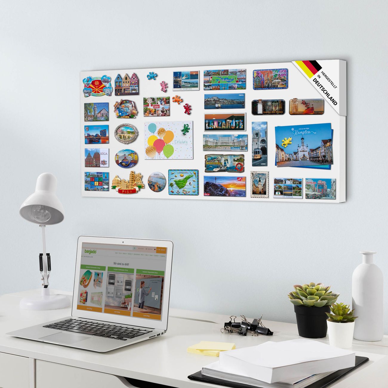 FUNKTION:  Die banjado Magnettafel mit Motiv bringt Ordnung in Ihr Zettelchaos. Fotos, Termine, Notizen oder Rezepte lassen Sich hier stilvoll mit Magneten ordnen, Sie behalten alles im Blick. An der Design Magnettafel halten alle handesüblichen Magnete. DESIGN:  Die magnetische Pinnwand mit dem Motiv ist ein eleganter Begleiter im Alltag. Mit dieser Memotafel aus Metall haben Sie auch ohne Notizen und Magnete ein schönes Dekoelement. Das Format bietet Ihnen ausreichend Platz um alle wichtigen Informationen im Blick zu behalten. DETAILS:  Die Magnettafel besteht aus silber-grau, weiß oder schwarzlackiertem Stahl. Sie hat eine Größe von 37 x 78 x 2cm. Es befinden sich auf der Rückseite vorgefertigte Aufhängungen die eine schnelle und unkomplizierte Anbringung ermöglichen. Das Motiv ist mit einem seidenmatten Laminat versehen und schützt so zusätzlich vor Kratzern. NUTZEN:  Sie können dieses Memoboard groß als Wandbild nutzen, es halten alle handelsüblichen Magneten daran. Die Pinnwand ist mit einem feuchten Lappen oder Schwamm abwischbar. Sie finden bei uns eine große Auswahl an passenden Magneten. BANJADO:  Wir sind ein kleines Team aus dem Herzen von Sachsen. Wir fertigen alle Artikel von Hand für Sie an, Sie erhalten keine preiswerte Importware. Auf Wunsch können Sie auch Ihr eigenes Foto auf die Magnettafel aufbringen, schreiben Sie uns an. Herzlichst, Ihr banjado-Team