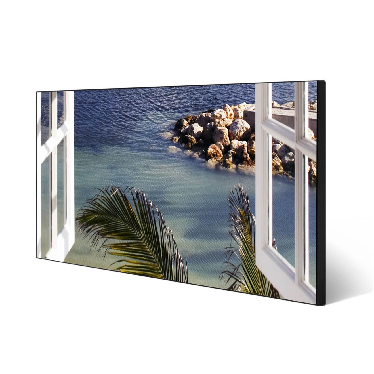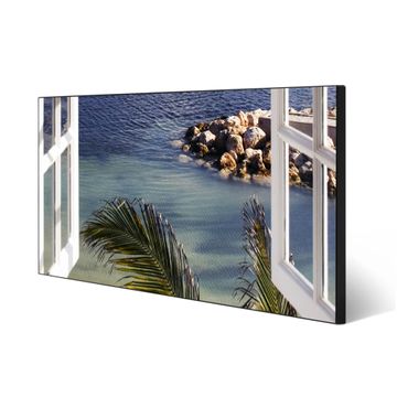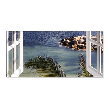 Motiv Fensterpanorama Nr. 10122 Größe: 78x37x2cm BxHxT Gewicht: ca. 2,10 kg Material: Stahlblech schwarz, Premiumfolie mit Schutzlaminat Magnete: für Dekomagnete geeignet beschreibbar: Nein Format: Querformat Zubehör: 4 Magnete, Schrauben und Dübel